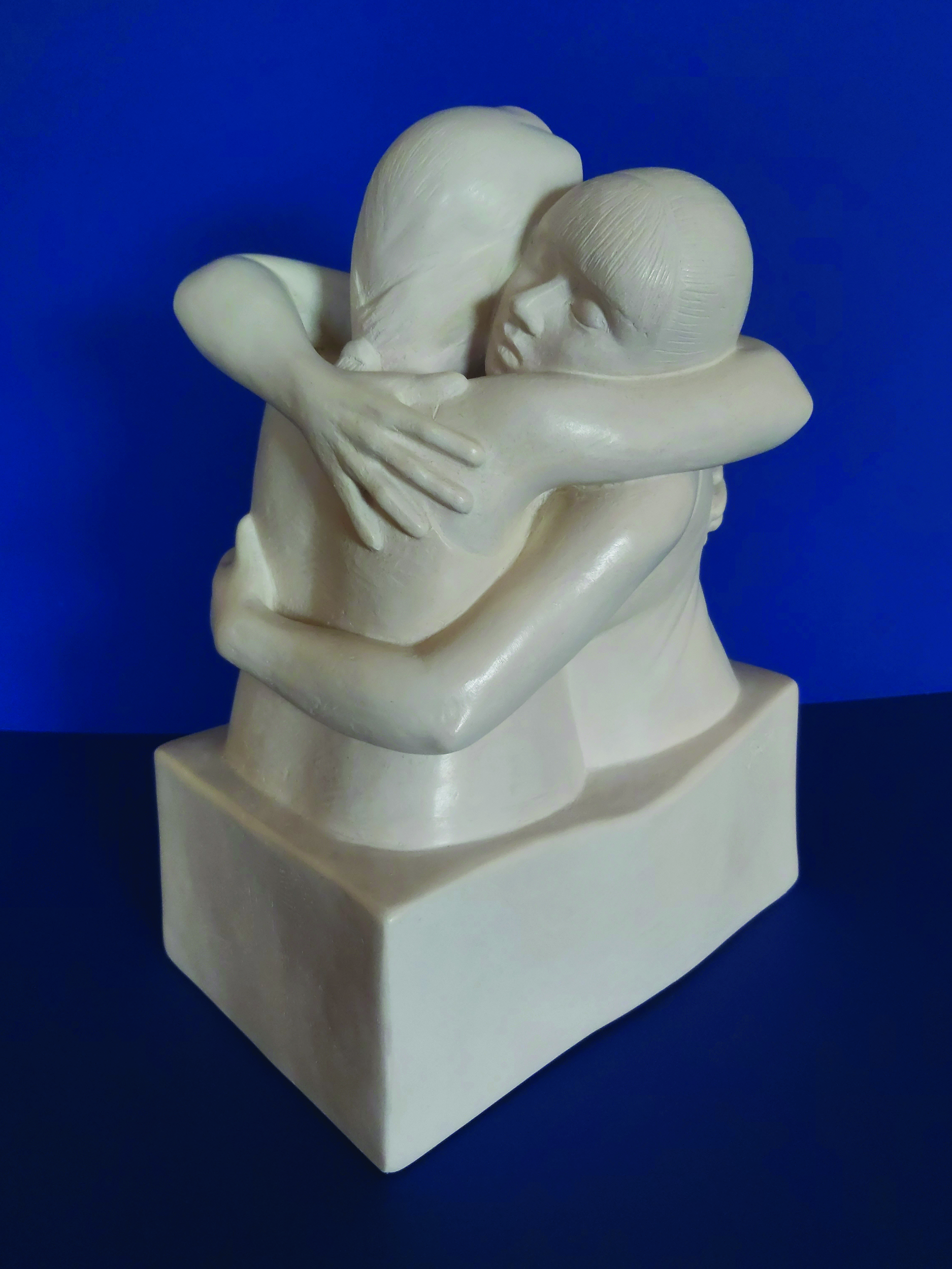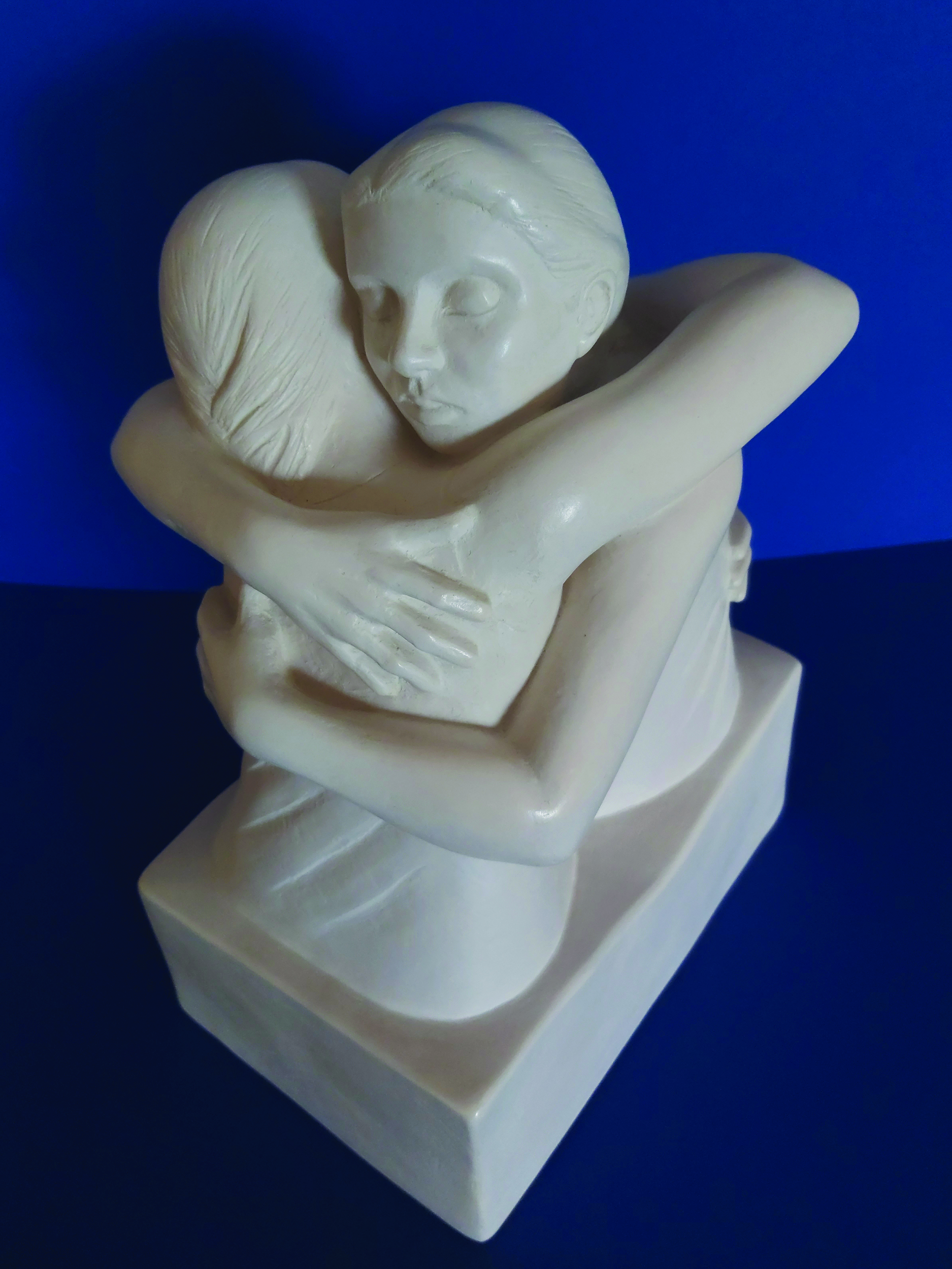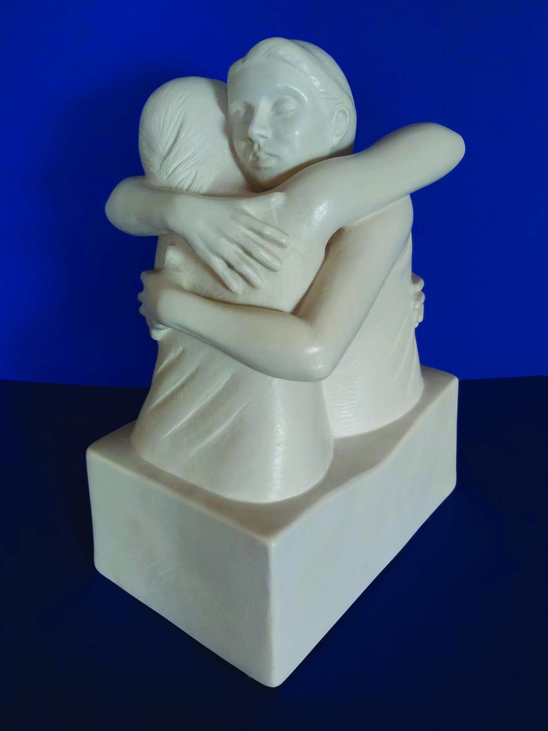 This piece was created during lockdown. “The Hug” is a symbol for all the people who are missing human contact, especially if they are separated by distance from family or maybe living abroad and cannot travel home due to restrictions.